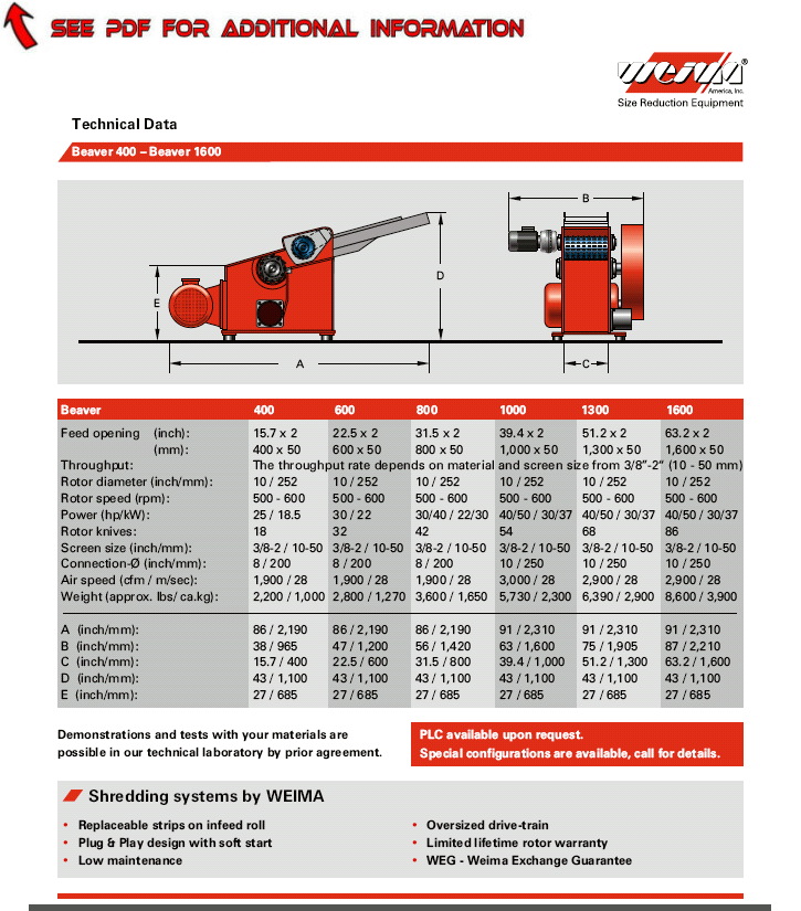 Équipé dun moteur de 25hp avec un rothor de 18 couteaux à 4 positions interchangables .Ouverture de l’alimentation de 39.5cm x 6.5 cm .