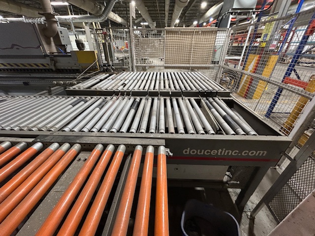 - Un capteur démarre l’abaissement de la table de réception à rouleaux entre chaque panneau.