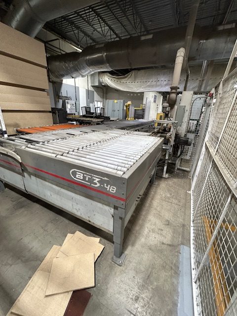 - Les convoyeurs de retour BT3 sont munis d’un moteur à vitesse variable afin de faciliter la synchronisation des vitesses de travail de la plaqueuse de chants et du convoyeur de retour. La vitesse de la table de réception du BT3 est ajustable de 30 à 90 pi/min, la vitesse du transfert à courroies est fixe à 180 pi/min et celle du convoyeur de retour est variable de 60 à 180 pi/min.