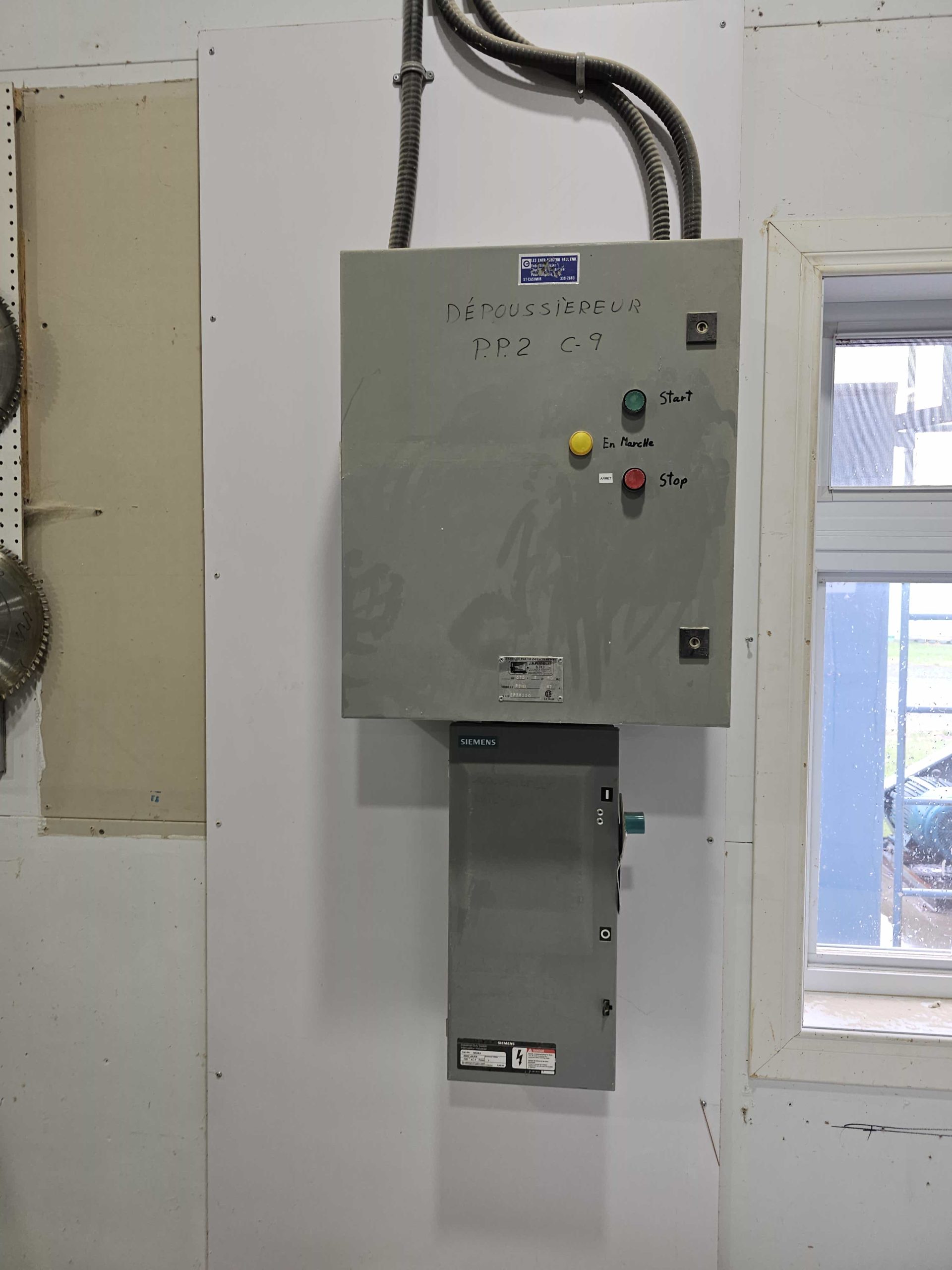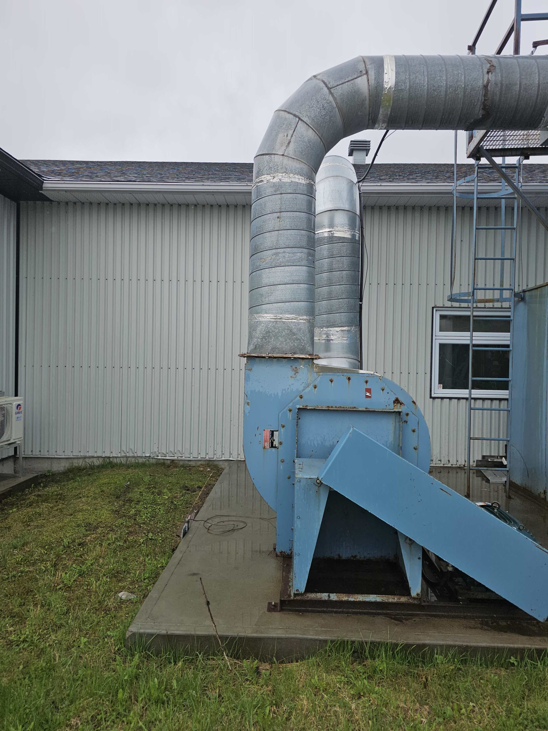 Dépoussiéreur de 40 Hp .Porte Anti Explosion. Panneaux électrique. Bac de récupération sous le dépoussiéreur très pratique pour vidanger avec un chariot élévateur.