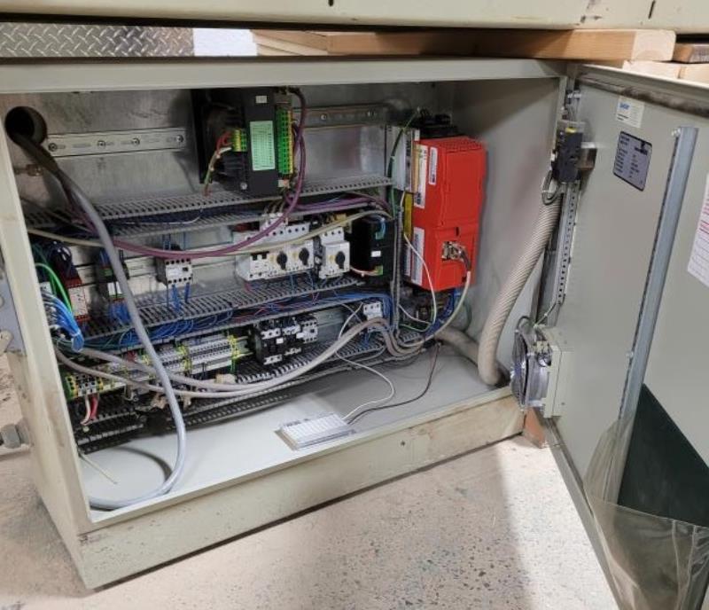 Table d’entrée de 18 pi et table de sortie de 8 pi. Vitesse avance 60 m/min.