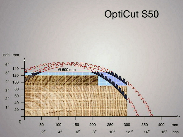 Mesure,optimise et déplacement automatique de l’avance de la scie entièrement controlé par le controleur Opticom.