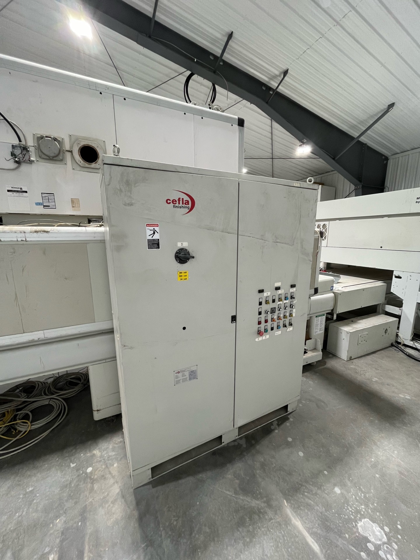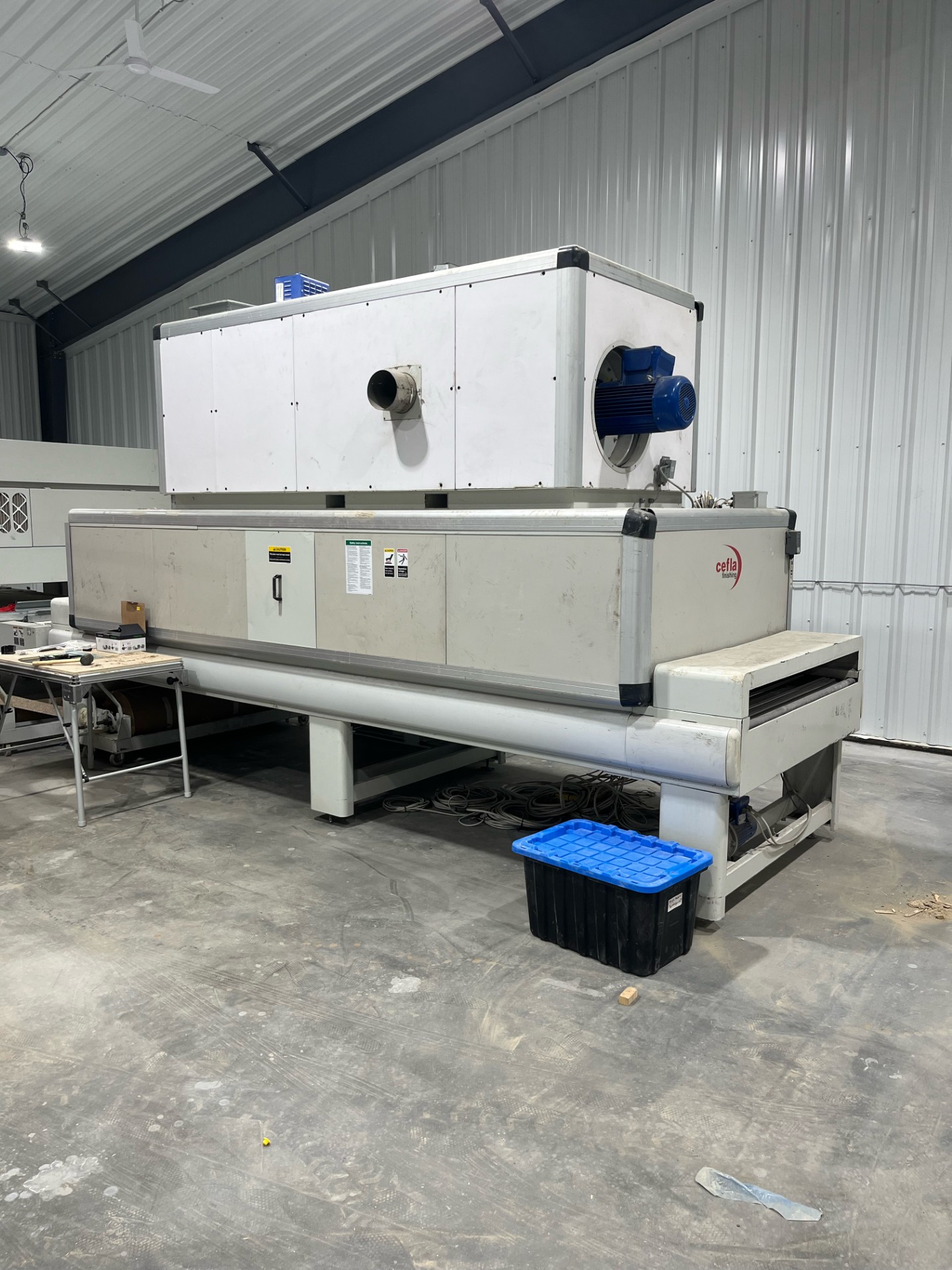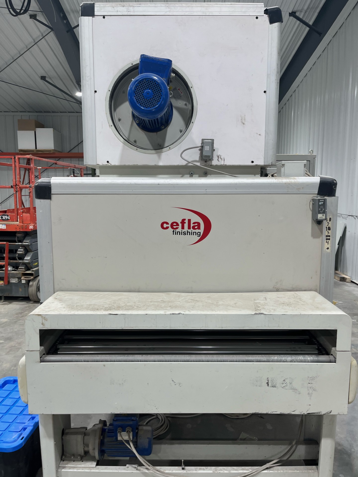 Convoyeur intérieur à 56’’ de large et il y a le panneau de contrôle qui a 22’’ de profond x 4’ large x 7’ de haut.